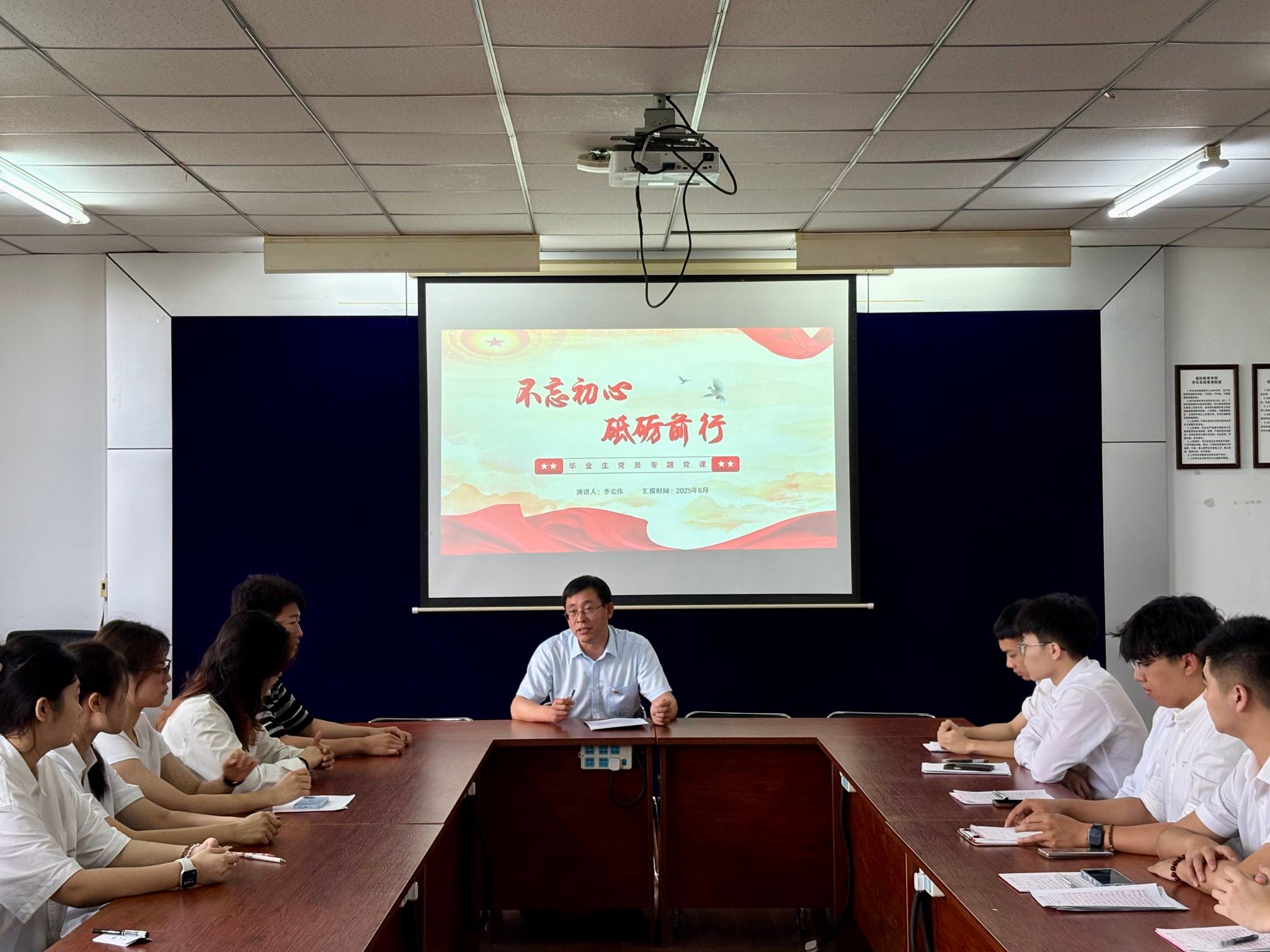 本网讯(通讯员 韩倓铖)2025年6月16日上午,国际教育学院党委书记季宏伟在南湖校区主楼1555会议室,以“不忘初心,砥砺前行”为主题,为全体毕业生党员讲授了一堂深刻而有温度的毕业前“最后一堂党课”。本次党课紧扣新时代青年成长成才规律,为毕业生党员指明了人生航向。