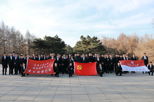 4月3日,国际教育学院学生党员、团学联及班团支部学生干部,在团委书记于伟、学生党支部书记李强、专职组织员李守瑶和辅导员杨娇华的带领下,到长春解放纪念碑前开展清明祭扫活动。