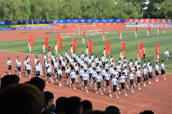 本网讯(通讯员 王权)5月17日,学校第四十一届田径运动会在南湖校区体育场隆重举行。校党委书记王忠宣布运动会开幕,校长张会轩致开幕词,校体育运动委员会主任、党委副书记李雁冰致闭幕词。