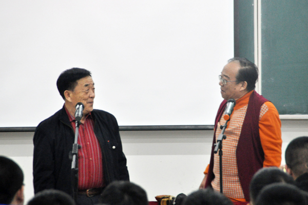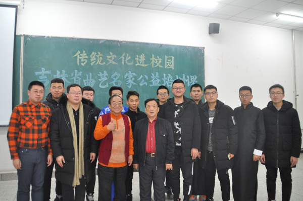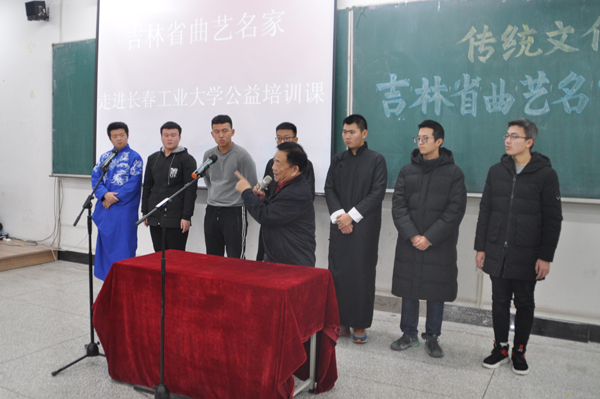 本网讯(学生通讯员 郭一达)12月10日,国际教育学院在北湖校区举行“传统文化进校园”活动,邀请吉林省曲艺名家、国家一级演员李长安、李宗义作公益培训课,活动由省曲艺家协会外联部主任王明海主持。