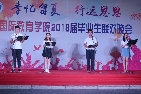 本网讯(通讯员 王权 殷浩宇)6月25日,国际教育学院在南湖校区老图书馆楼前举办“季忆留夏,行远思恩”2018届毕业生联欢晚会。