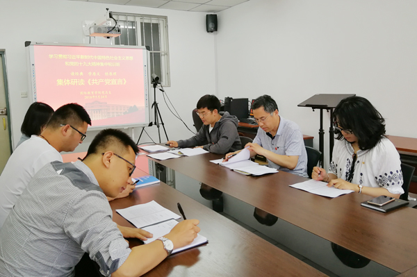 本网讯 按照学校党委学习贯彻习近平新时代中国特色社会主义思想和党的十九大精神集中轮训班日程安排及要求,5月24日下午,国际教育学院党总支组织教工党员集体研读《共产党宣言》。