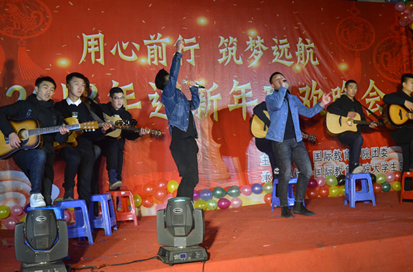 新闻网讯(通讯员曾繁湫)为了迎接2018年的到来,展现国际教育学院文艺活动水平,12月28日晚,国际教育学院于北湖主楼大厅举办“用心前行,筑梦远航”2018年迎新年元旦晚会,国际教育学院团委书记于伟,辅导员李守瑶,辅导员助理陈曦、代旭、李凯鹏,学生处范婷婷,应用学院辅导员尹正、田贺,人文学院辅导员助理程琳,机电学院辅导员助理王艺霖,电气学院辅导员助理时万旭作为嘉宾观看此次晚会,全体17级学生和部分16级学生作为观众观看了本次晚会。