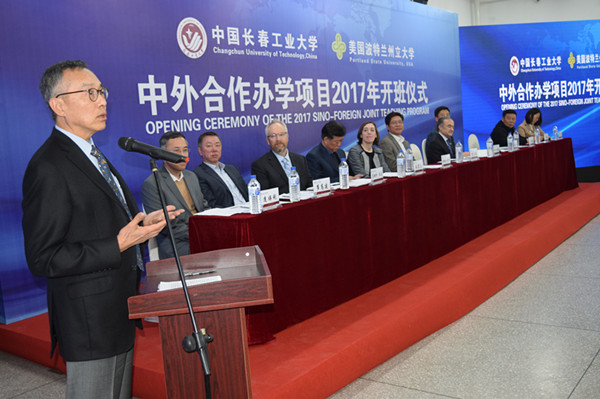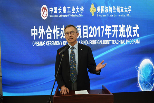 新闻网讯(通讯员李守瑶)2017年10月25日,betway西汉姆联官网与美国波特兰州立大学合作办学项目2017年开班仪式在北湖校区西阶102召开。betway西汉姆联官网副校长李占国,美国波特兰州立大学校长拉赫马特·塞勒西,教务长兼副校长玛格丽特·埃弗雷特,工程与计算机科学学院院长苏仁政、副院长詹姆斯·库克,国际教育学院院长姜长泓,计算机科学与工程学院院长王宏志,电气与电子工程学院副院长卢秀和,国际教育学院副院长崔高健,办公室主任李宏出席开班仪式,2017级中外合作办学项目班学生全体同学参加了开班仪式。仪式由国际教育学院副院长逄焕利主持。